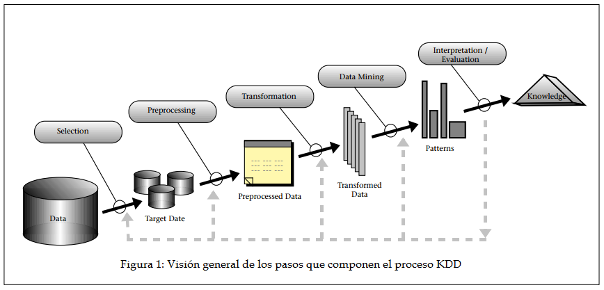 La KDD (Knowledge Discovery in Databases) o Descubrimiento de Conocimiento en Bases de Datos es un proceso de extracción de conocimiento valioso y previamente desconocido a partir de grandes volúmenes de datos. Este proceso abarca varios pasos y utiliza una combinación de técnicas de análisis de datos, minería de datos y aprendizaje automático.